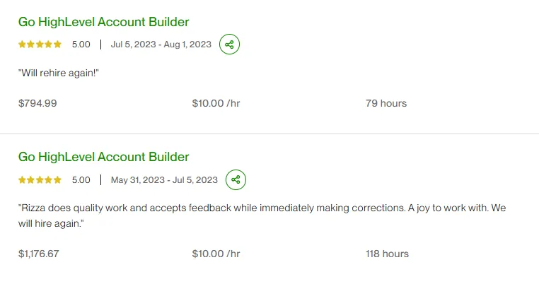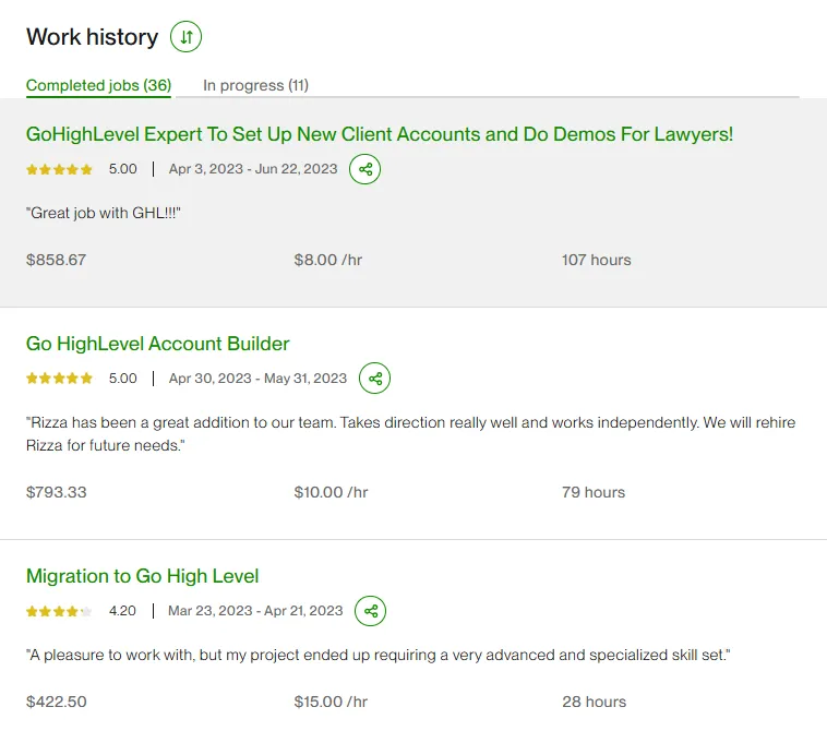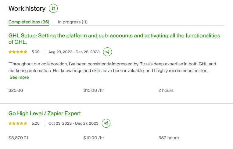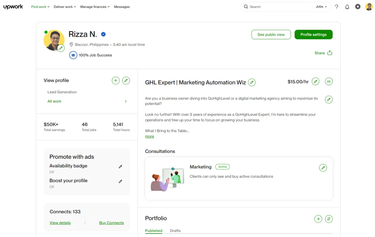 I went from working as a Customer Care Representative for 5 years to earning over $50,000 on Upwork since 2022. I discovered GoHighLevel through a friend and took it upon myself to self-study this powerful CRM system.